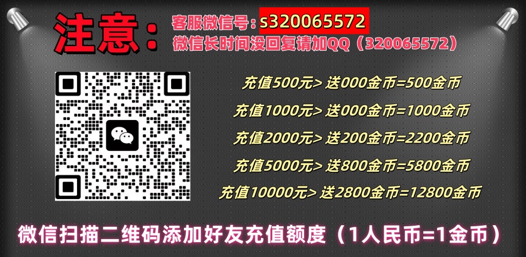 由于微信多人添加,容易异常限制,即日起添加管理QQ的新用户可以申请领取额外金币赠送,详情添加管理QQ:320065572;只限QQ申请。